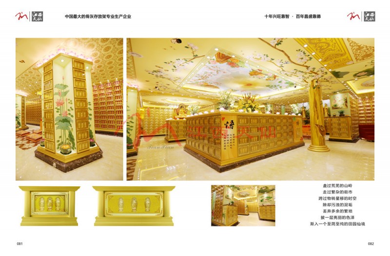 江西天仙精藏設備有限公司是一家生產和銷售福壽架(骨灰存放架、骨灰寄存架)的企業。公司坐落于距南昌80公里的江西省樟樹市,一座經過幾代樟樹人用辛勤汗水打造的“中國金屬家具產業基地”。